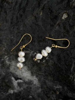 Kolczyki bigle z trzema perłami słodkowodnymi.